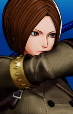 | Shatter Strike | Novedad en KOF XV, el golpe es idéntico al golpe de impacto (ver arriba), pero con nuevas propiedades. De pie, introduce DHA+ +  para un golpe con propiedades de armadura que desplomará al rival si golpea. Necesita una barra de poder (POW). |