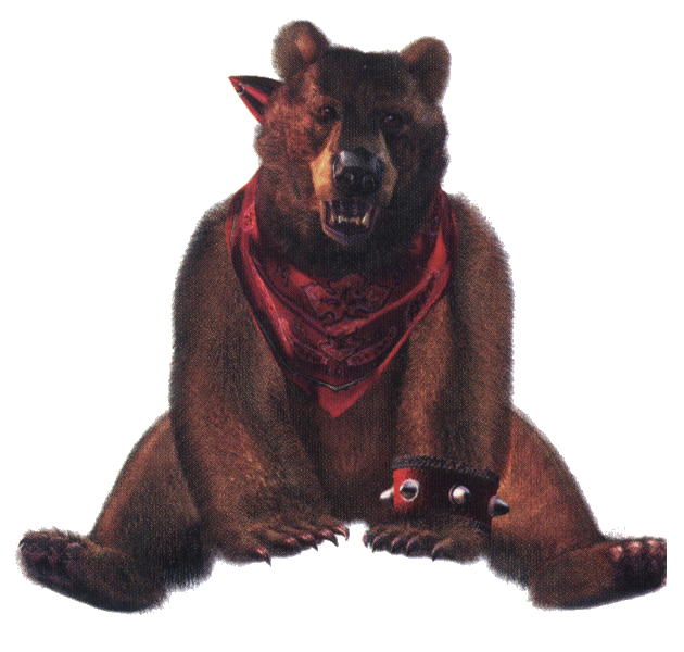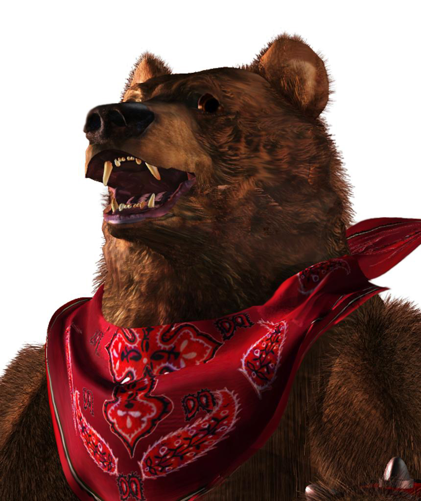 ![]() La primera vez que veas a Kuma te preguntarás: ¿Qué pinta un oso en un juego en juego de lucha? La respuesta es simple: se trata de la mascota de Heihachi. Kuma ha estado presente en todos los juegos de Tekken (sin tener en cuenta que Kuma I murió) y es uno de esos personajes que llama la atención en la pantalla de selección de personajes, pero lo cierto es que siempre había estado considerado como uno de los "paquetes" de Tekken: sus movimientos eran lentos, predecibles y arriesgados; además necesitaba estar cerca del rival, lo que complicaba todavía más las cosas. Afortunadamente, a partir de Tekken 4 Namco hizo un esfuerzo para convertir a Kuma en un personaje competente y el trabajo ha dado sus frutos: ahora sus movimientos tienen personalidad propia, son más difíciles de leer y más explosivos. También se hizo un mayor hincapié en su "instinto animal" con golpes más brutales y sorprendentes. A día de hoy, Kuma puede ser un rival muy molesto... sobre todo si lo acompaña Panda en el modo Tag. Como curiosidad, Kuma en japonés quiere decir oso. |